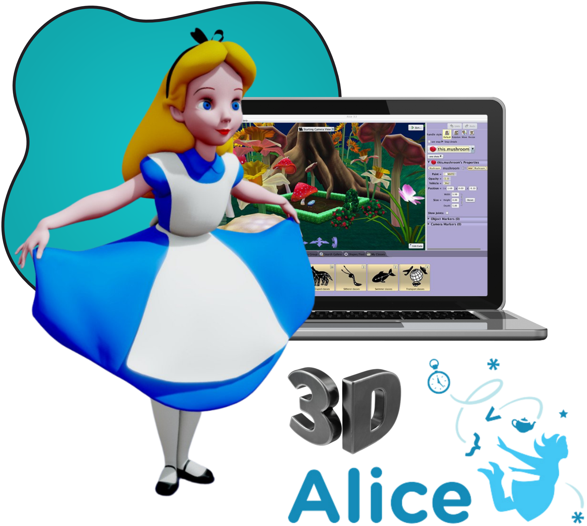 Alice 3 – универсальная среда для обучения программированию и 3D-моделированию. Создайте свой персонаж Sims и научите его двигаться. Управляйте камерой и персонажем при помощи программного кода. Реализуйте собственную 3D-анимацию.